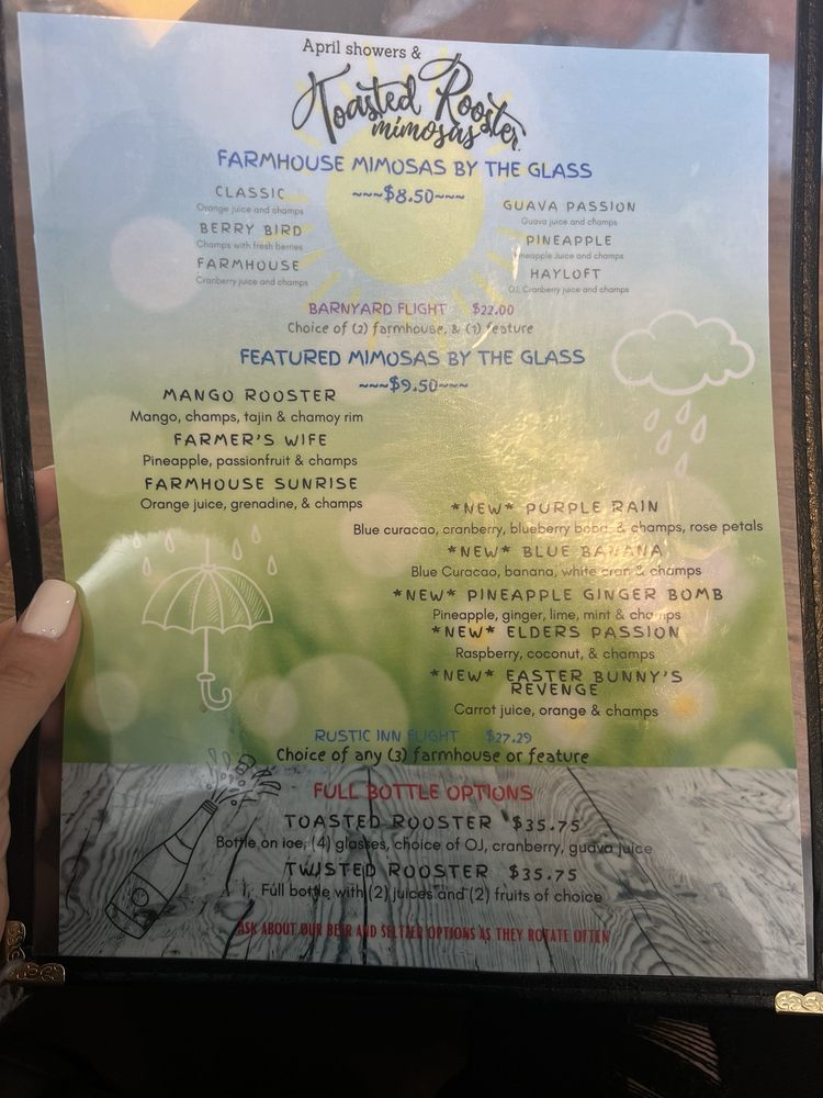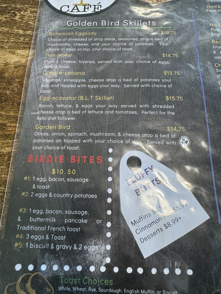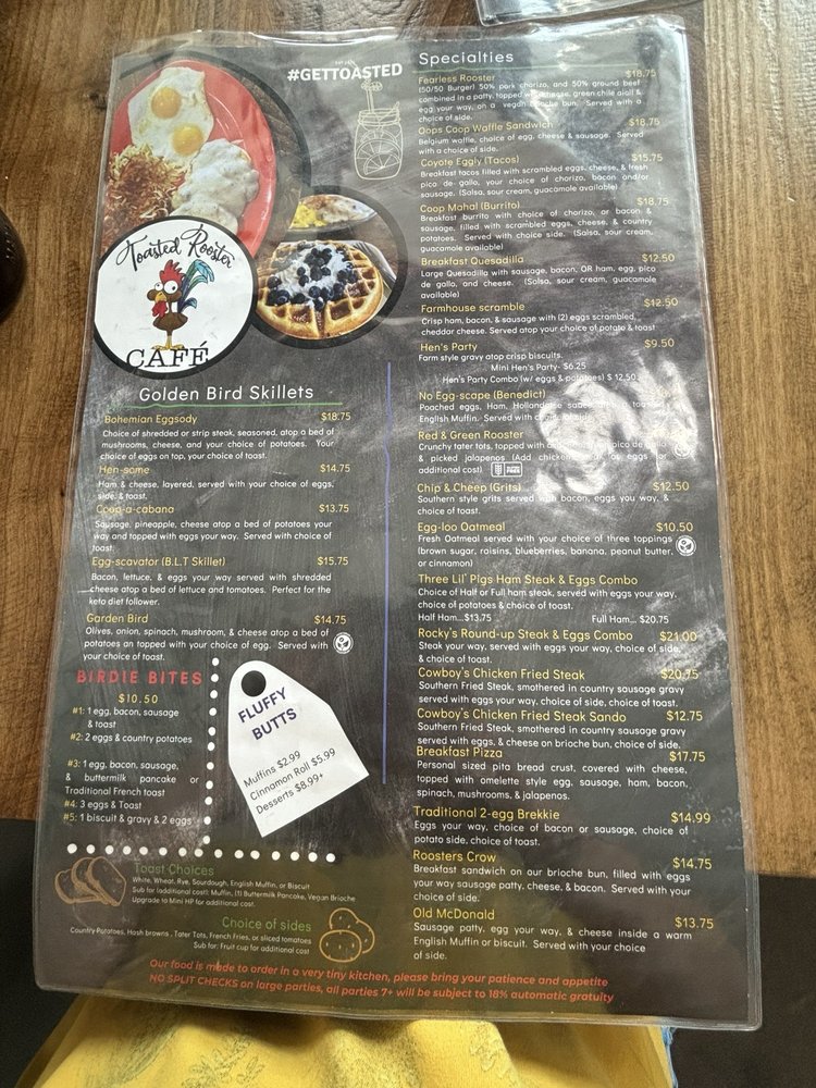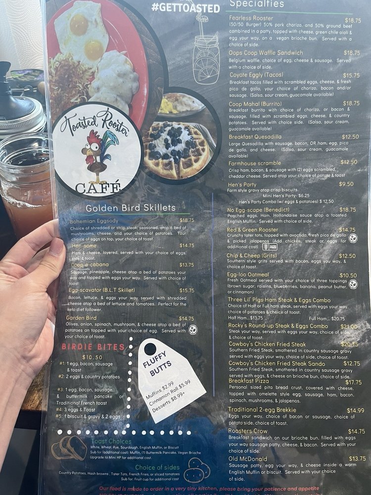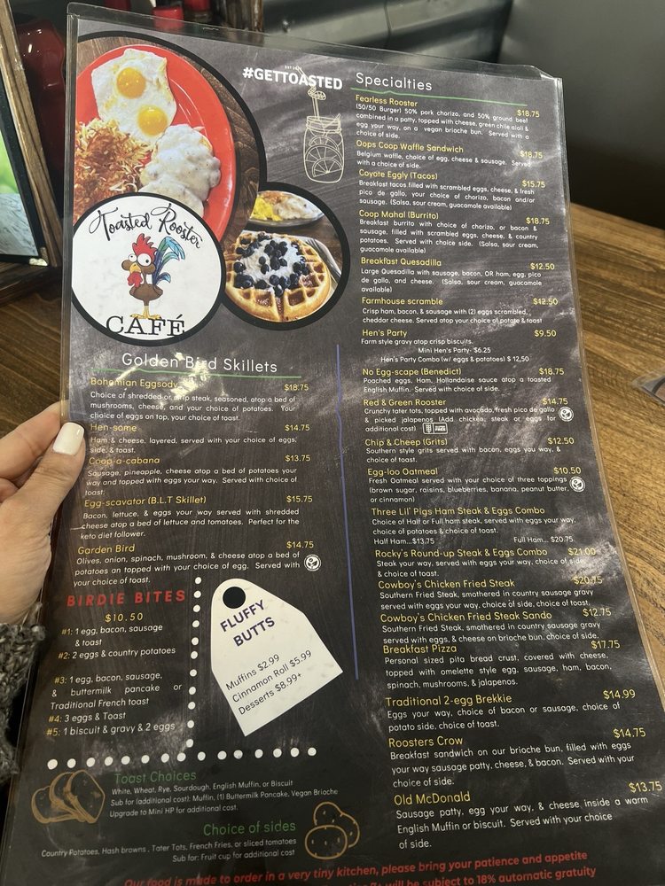 Toasted Rooster Cafe, located in Sacramento, offers a diverse menu featuring burgers, cocktails, and breakfast/brunch options. With vegan and vegetarian choices, wheelchair accessibility, and various payment options including cryptocurrency, it caters to a wide range of diners. The Chef's Special, Biscuit Brigade, is a crowd favorite, showcasing a delicious blend of sausage, cheese, egg, and country gravy on a crisp biscuit. Customer reviews highlight the warm, welcoming atmosphere, generous portion sizes, and friendly service. The menu, although extensive, may require some patience due to the small kitchen, but the flavor-packed dishes make it worth the wait. Overall, Toasted Rooster Cafe is a hidden gem in the Arden area, offering a delightful dining experience for breakfast or brunch enthusiasts.